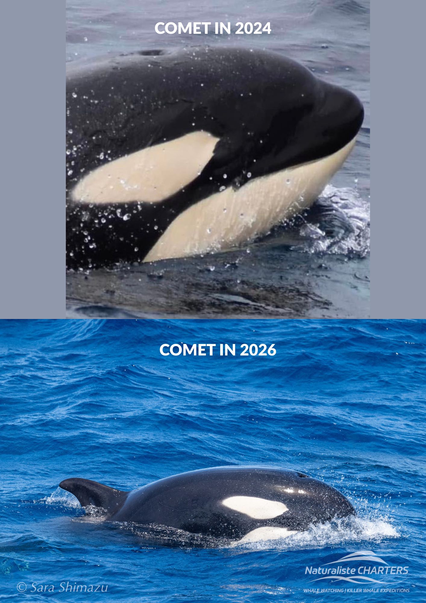 Lucky’s group appeared twice, notable for containing several mature males — an uncommon pod structure — alongside two newly confirmed calves. Additional rare individuals, including Kraken, expanded the season’s growing catalogue of orca within the region.