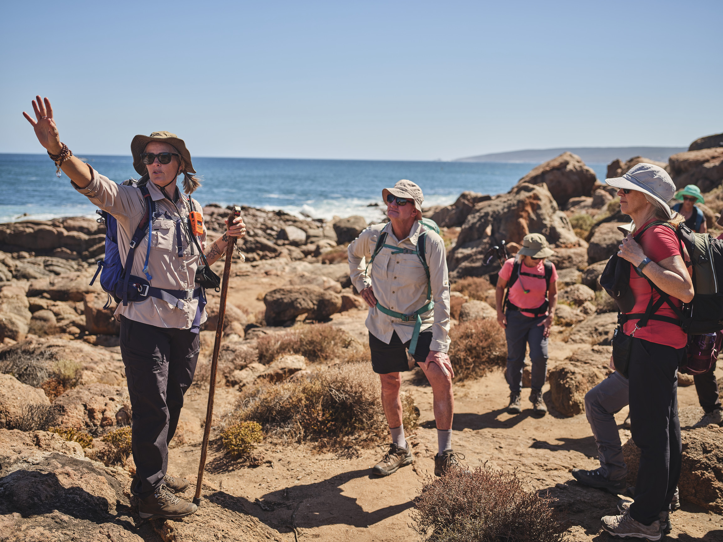Tour Guide leads group along the Cape to Cape track in the Margaret River Region.